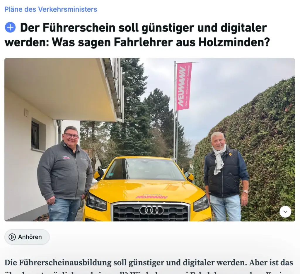 „Er ist mit allen technischen Finessen ausgestattet“, beschreibt ihn Frank Neumann, „und ihn werden wir als Fahrschulbus einsetzen“. Damit ist sicher: Mit ihm werden Bodenwerder und Münchhausen weit über die Grenzen des Weserberglandes über die Straßen rollen. Denn mit ihrer Busfahrschule sind die Neumann überall im Norden und Westen der Republik aktiv.